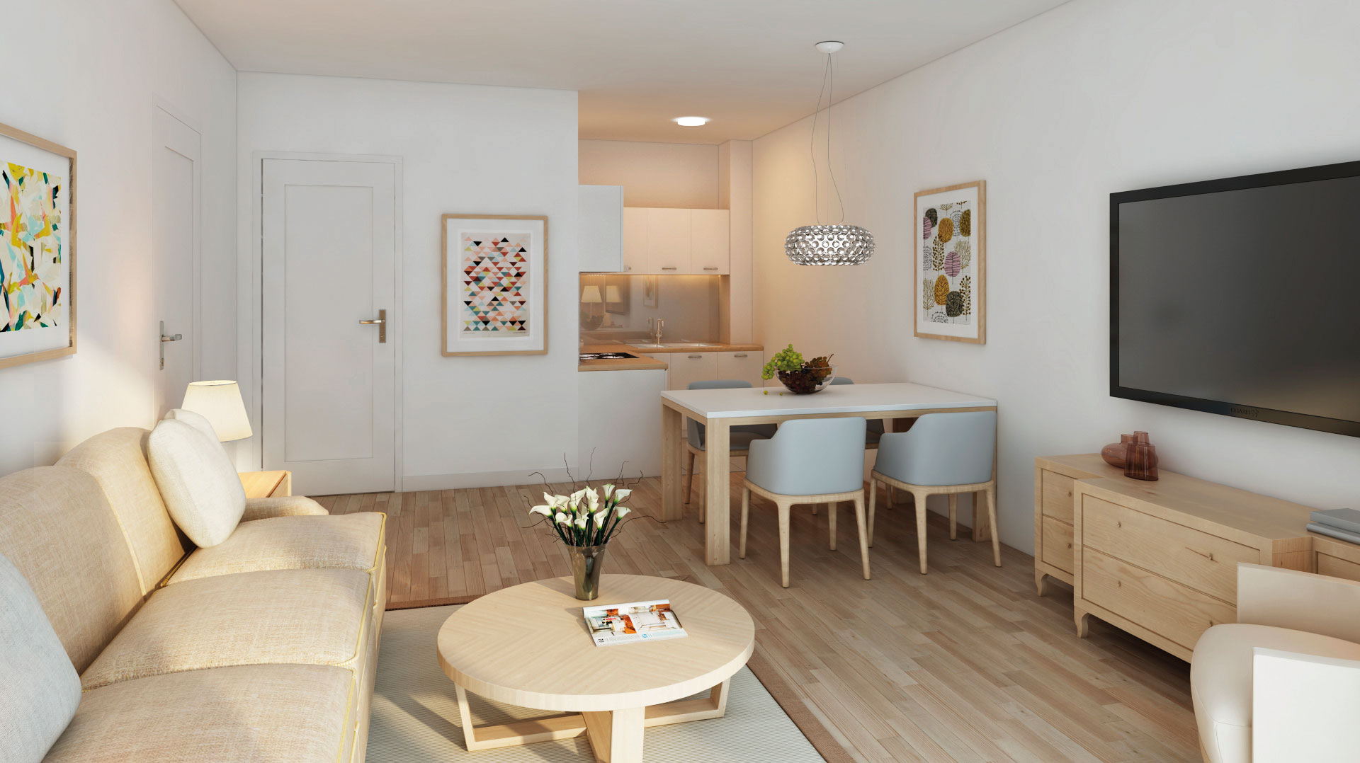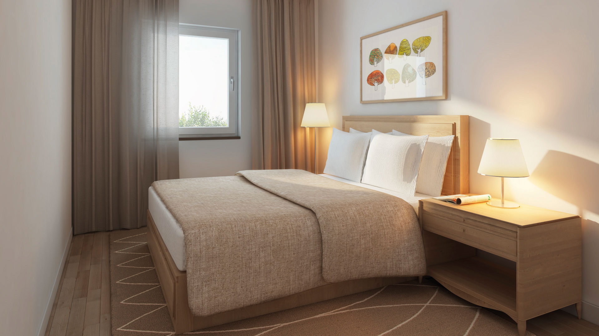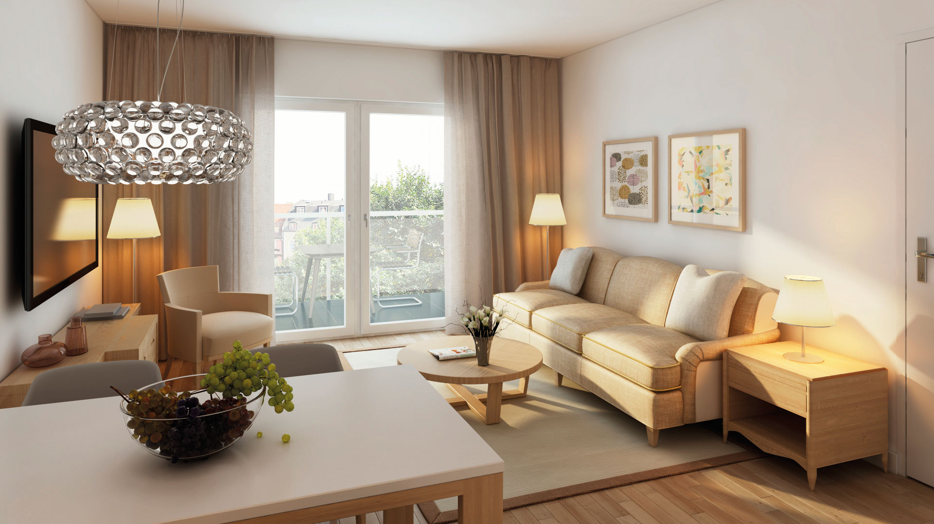 Jede Wohnung ist in sich abgeschlossen und verfügt über mindestens zwei Zimmer. Der Wohn- und Schlafbereich wird getrennt. Die Barrierefreiheit wird gewährleistet und betrifft alle Bereiche der Wohnung. Ebenso wird auf die Einhaltung der geforderten Bewegungsflächen und Durchgangsbreiten Rücksicht genommen, so dass eine Benutzung von Zimmerrollstühlen oder sonstigen Gehhilfen bei Bedarf möglich ist.